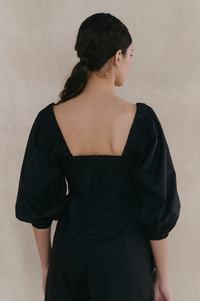 Blusa con manga al codo, detalle de fruncido en copa de manga y puño. Escote cuadrado tanto adelante como atrás. Posee detalle de bordado a mano con hilo de algodón. Fit entallado, largo a la primera cadera. Composición por 100% algodón. Limpieza y Cuidados: lavar a mano con agua fría, no retorcer, no frotar sobre bordado. Al ser un proceso artesanal, las prendas pueden variar sutilmente. "Lo mágico de lo irrepetible"