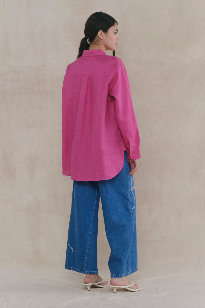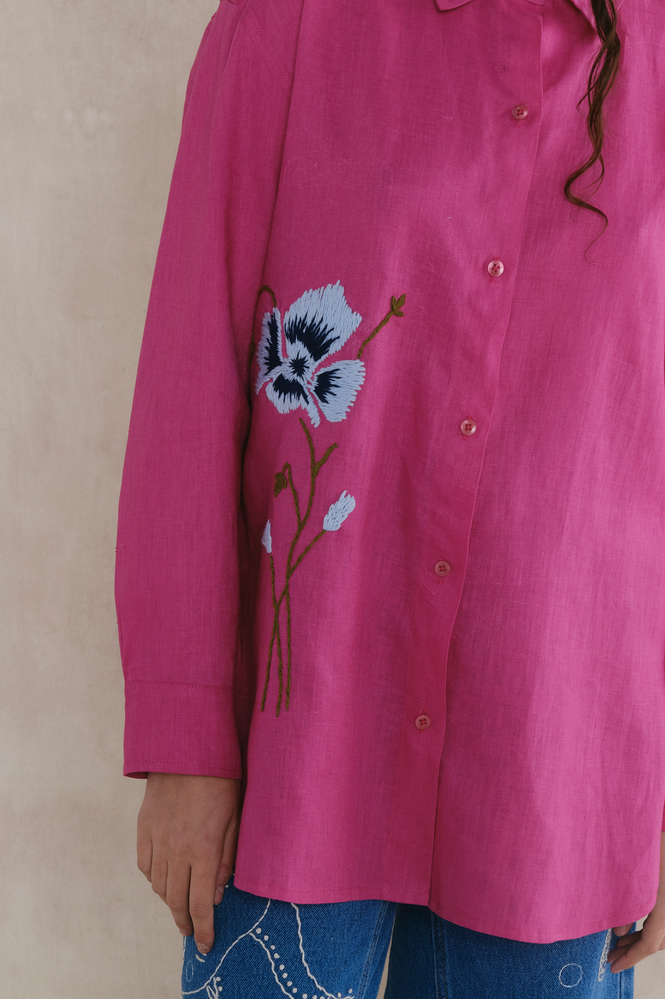 Camisa con manga larga, confeccionada en lino 100%. Posee bordado artesanal realizado a mano con hilo de algodón y seda lo que la hace elegante y refinada. Fit amplio, largo por debajo de la segunda cadera. Una prenda basica de diseño para atesorar temporada tras temporada. Limpieza y Cuidados: lavar a mano con agua fría, no retorcer. Al ser un proceso artesanal, las prendas pueden variar sutilmente. "Lo mágico de lo irrepetible."