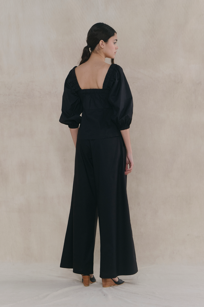 Pantalón ancho con corte a la cintura, detalle de tablas y presillas decorativas. Confeccionado en poplín liviano, lo que lo hace fresco y versátil. Fit semi wide. Composición: 100% algodón. EN STOCK