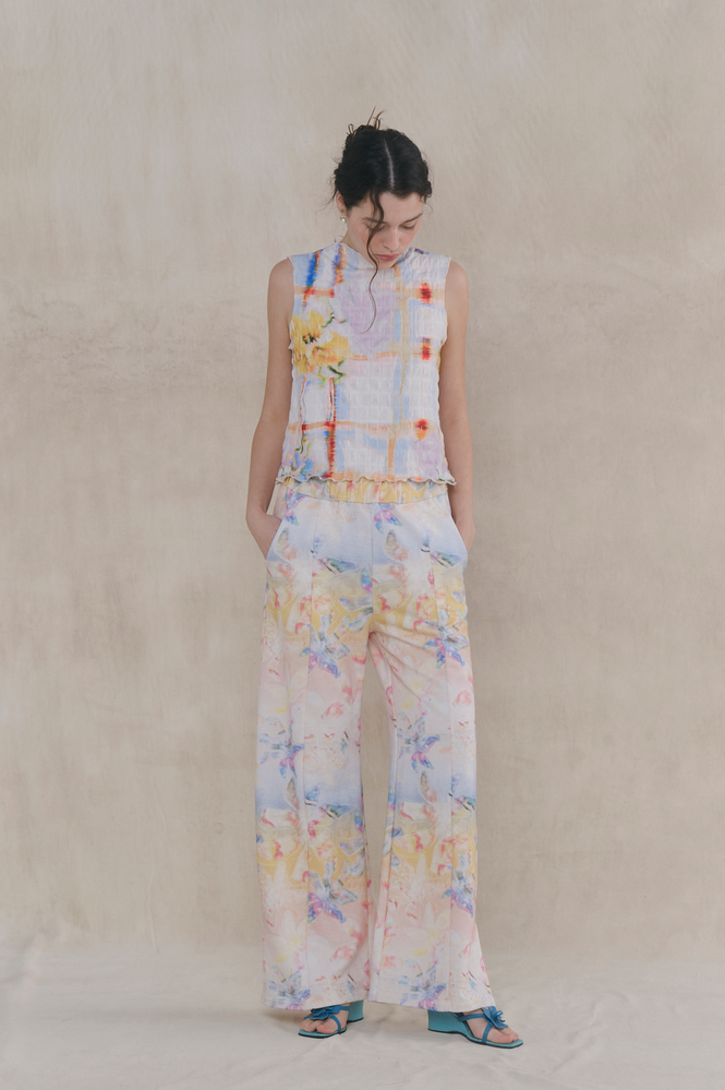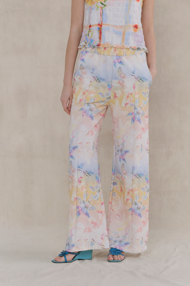 Pantalón tipo jogging con elástico en cintura, fit wide. Con estampado digital exclusivo de la colección Oceanica SS26. Composición: 100% algodón