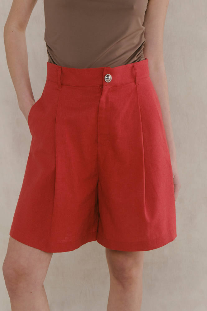 Bermuda de lino con tabla que aporta amplitud y comodidad. Detalle de avío personalizado. Fit a la cintura y largo arriba de rodilla. Un item clásico que se reversiona. Composición: 55% lino, 45% algodón