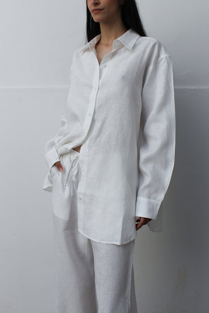 Camisa con manga larga, confeccionada en lino 100%. Posee bordado artesanal realizado a mano con hilo de algodón y seda lo que la hace elegante y refinada. Fit amplio, largo por debajo de la segunda cadera. Una prenda basica de diseño para atesorar temporada tras temporada. Limpieza y Cuidados: lavar a mano con agua fría, no retorcer. Al ser un proceso artesanal, las prendas pueden variar sutilmente. "Lo mágico de lo irrepetible."